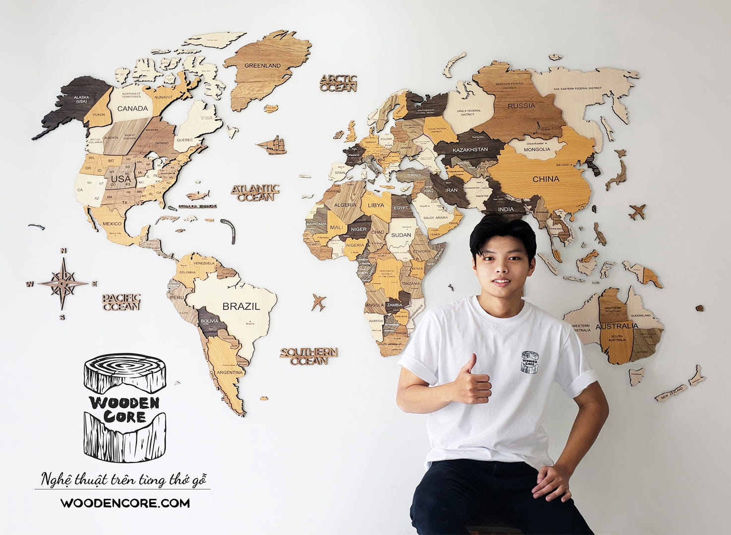 WoodenCore.com mang đến những tấm bản đồ Thế giới bằng gỗ, bảng đồ gỗ gắn tường, treo tường và dán tường. Những bản đồ gỗ Thế giới đều làm handmade độc đáo với giá cả phải chăng! Các bản đồ bằng gỗ luôn được chú trọng chất lượng từ khâu tuyển chọn tới gia công.